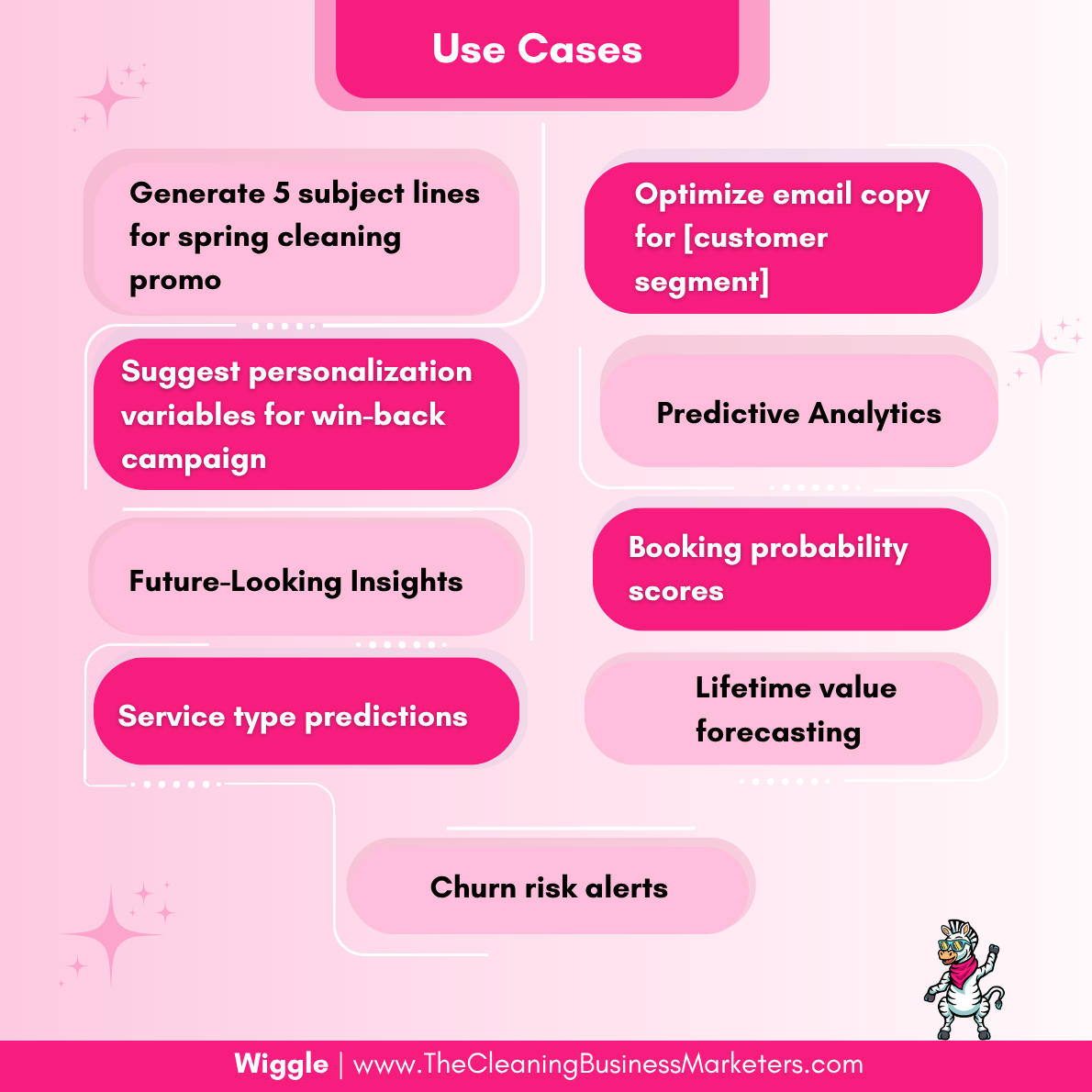 ๐ Use cases โข Generate five subject lines for a spring cleaning promo, optimize email copy for a specific client segment, or build personalization rules into your win-back campaigns.